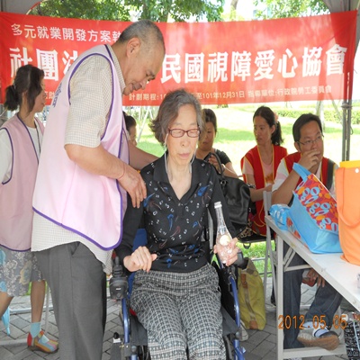 101年5月5日(六)華山社會福利慈善事業基金會,邀請至台北市德行西路仰德公園,參加迎夏活力敬老園遊會,幫65歳以上長者義務按摩